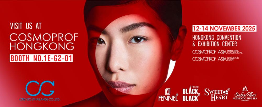 Cosmoprof Asia Hong Kong 2025 Our booth in Cosmoprof Asia Hong Kong from 12th Nov - 14th Nov, 2025 at Hong Kong Convention & Exhibition Center Stand : 1E-G2-01 Cris Go (Thailand) Co., Ltd. Please do visit to see our product range. See you there!